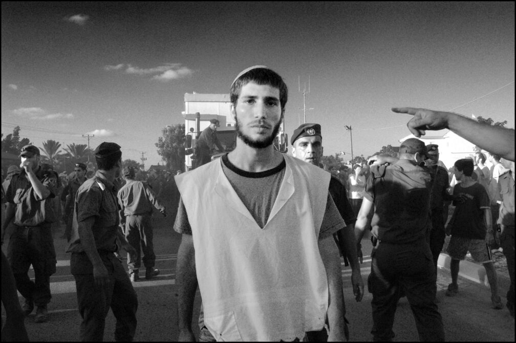 Gaza settlers in a confrontation with Israeli troops sent in to dismantle their settlement.